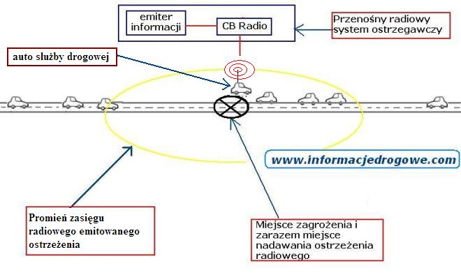 Urządzenia służą do automatycznego ostrzegania kierowców bezpośrednio w miejscu zagrożenia. Informacje nadawane są cyklicznie z wozu serwisowego służb drogowych.